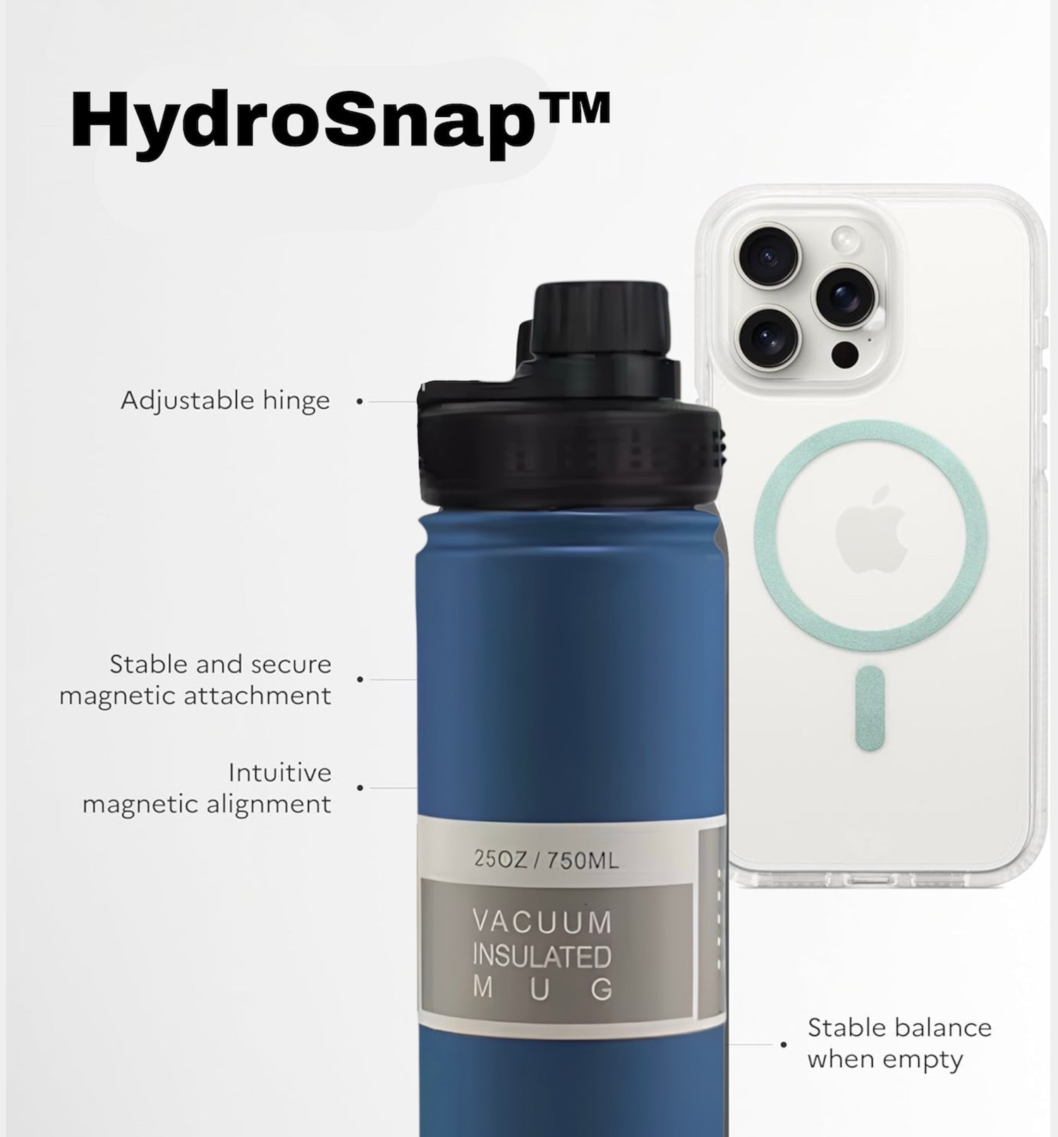 HydroSnap™ 2 . The new and improved attaches your phone directly to your water bottle, eliminating the need to juggle hydration and device management. Stay hydrated while keeping your phone secure and within reach—no more lost devices, dropped phones, or forgotten bottles. Perfect for the gym, commute, or daily life.